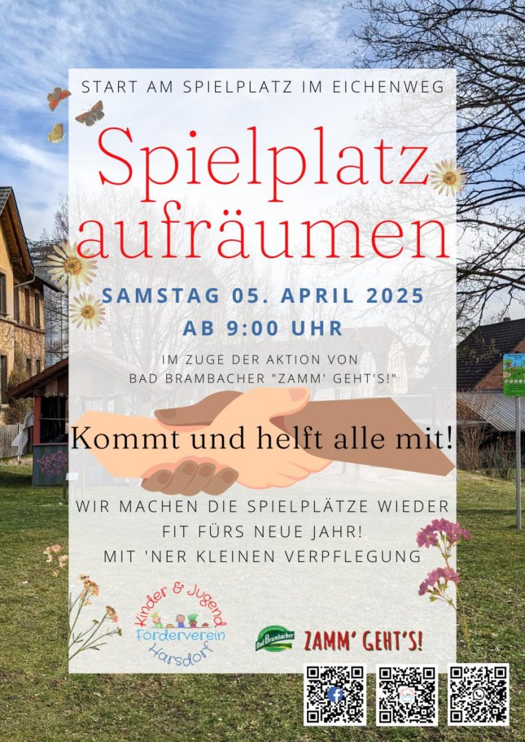 Im Zuge der Aktion von Bad Brambacher „Zamm‘ geht’s!“. Kommt und helft alle mit! Wir machen die Spielplätze wieder Fit fürs neue Jahr! Mit ’ner kleinen Verpflegung